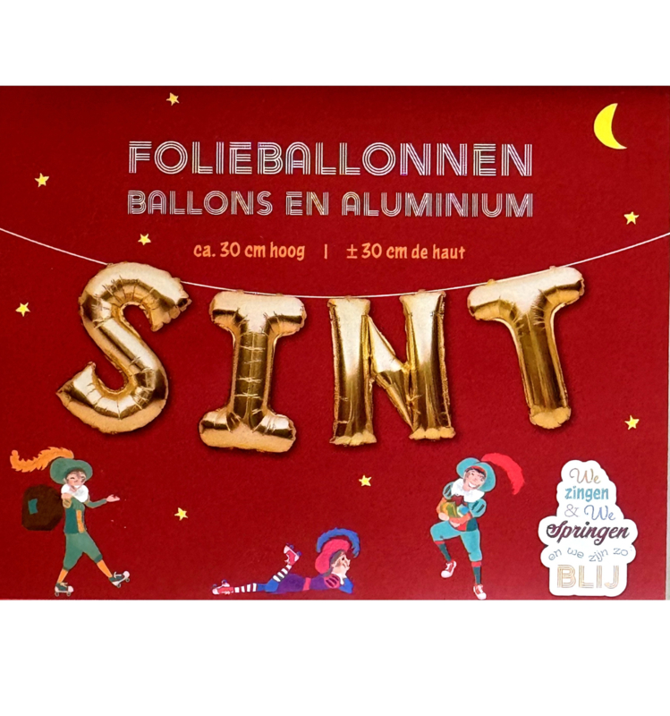 Sint slinger folie ballonnen met de tekst: Sint. Letters meten 30cm en gemakkelijk op te blazen.